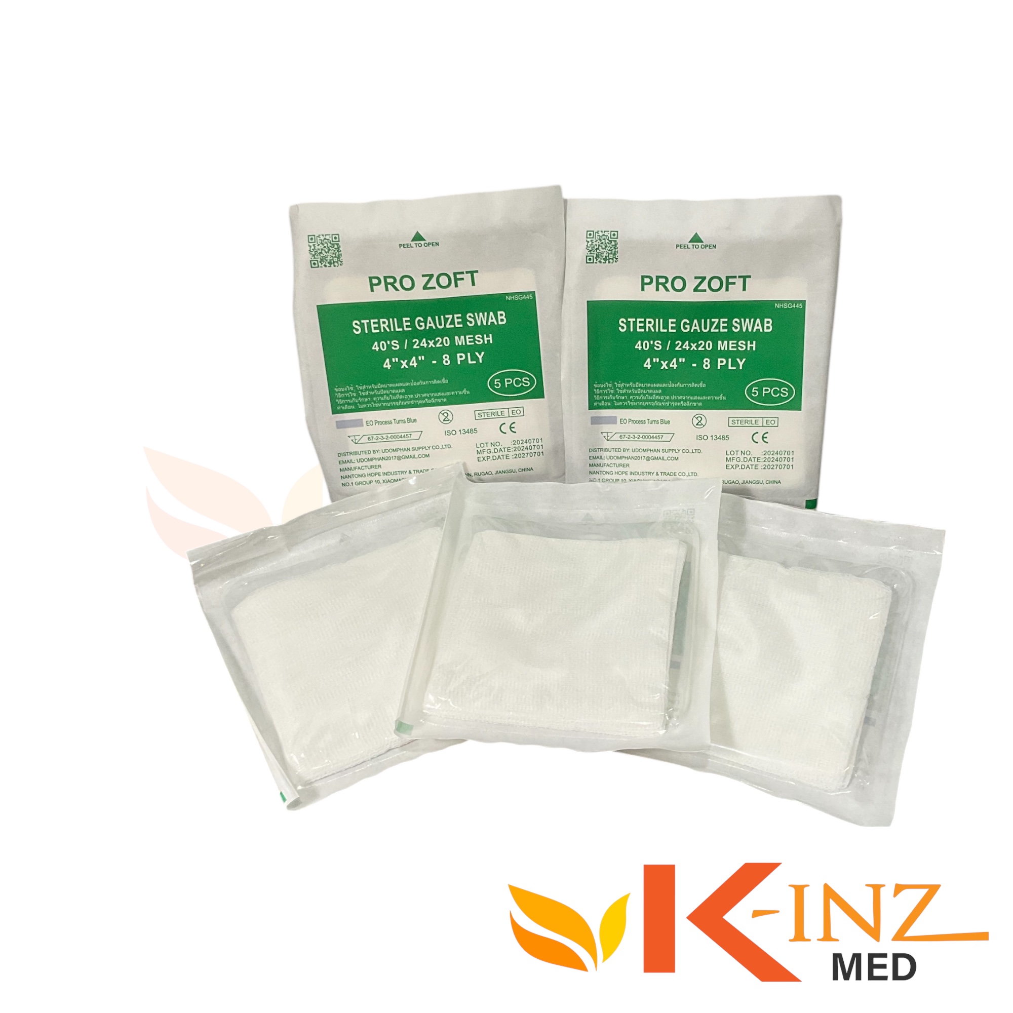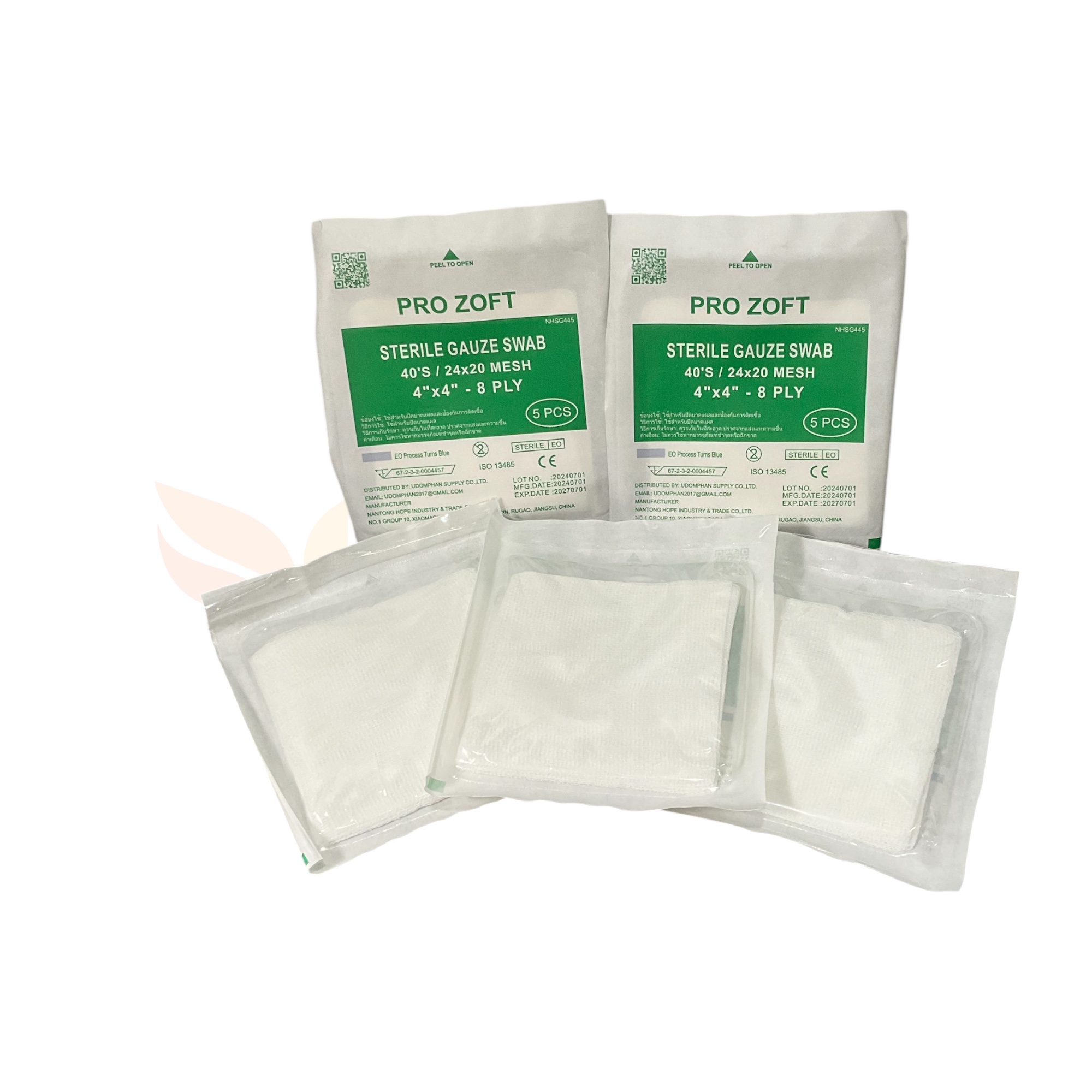 ผ้าก๊อสแบบแผ่น ชนิดผ่านการสเตอร์ไรล์ ในซองบรรจุ 5 ชิ้น/ซอง (จำหน่ายปลีก ครั้ง 5 ซอง)