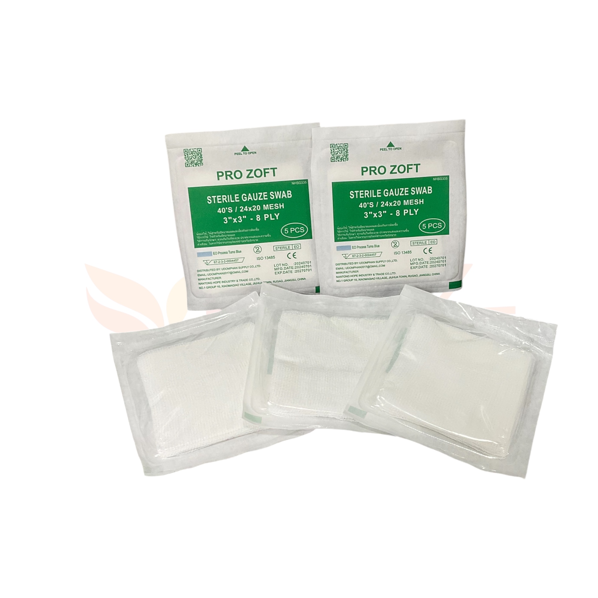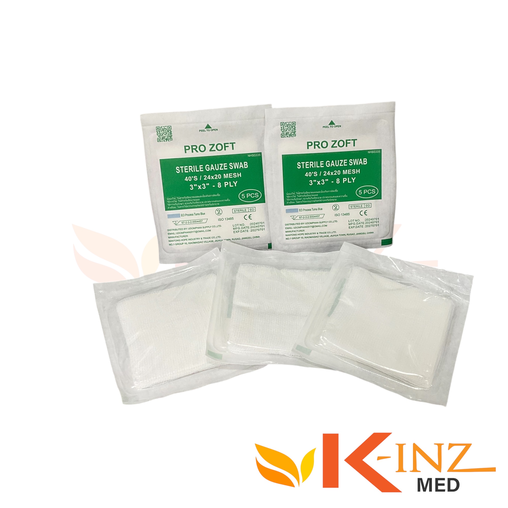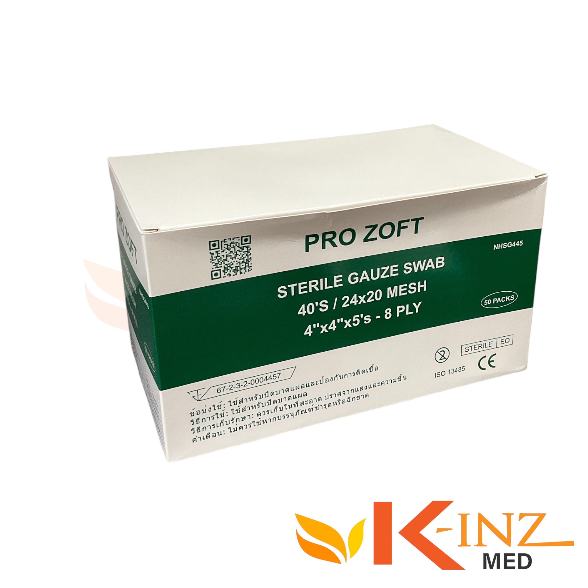 ผ้าก๊อสพับ ชนิดผ่านการสเตอร์ไรด์ ในซองบรรจุ 5 ชิ้น ขนาด 4"x4"x8 พับ PRO ZOFT