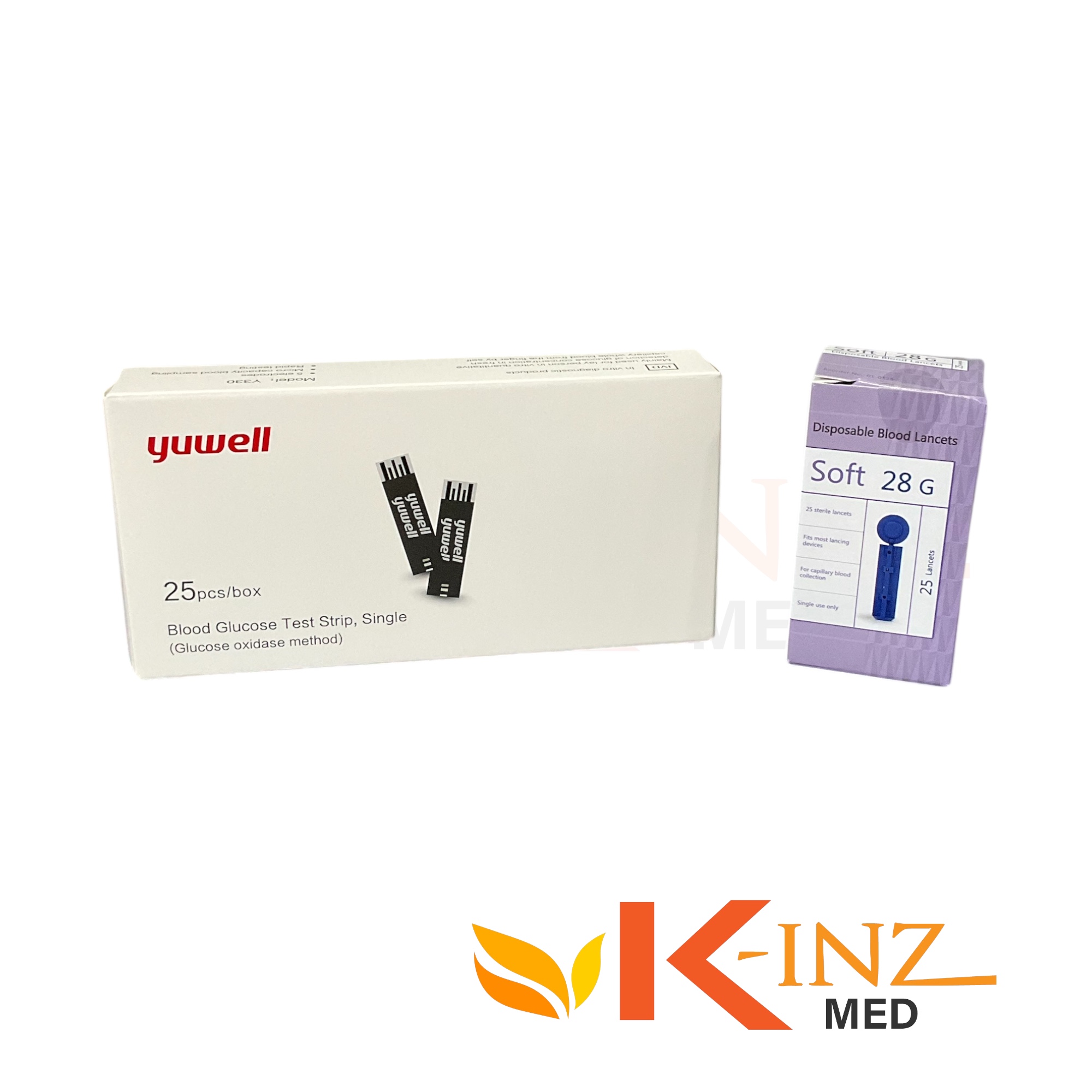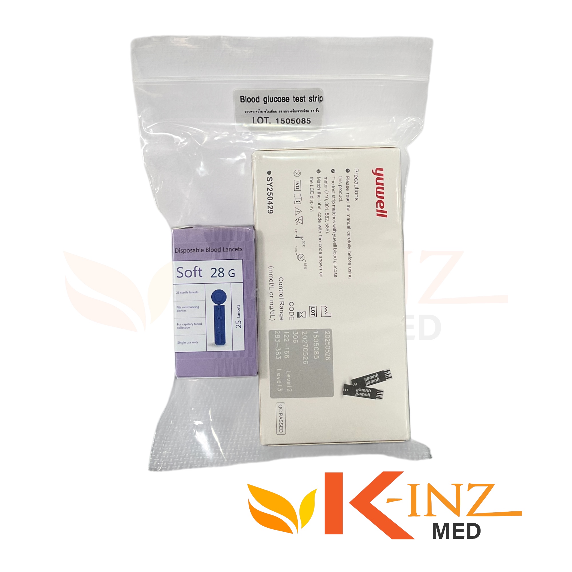 ชุดแผ่นตรวจพร้อมเข็มเจาะเลือด YUWELL จำนวน 25 ชุด
