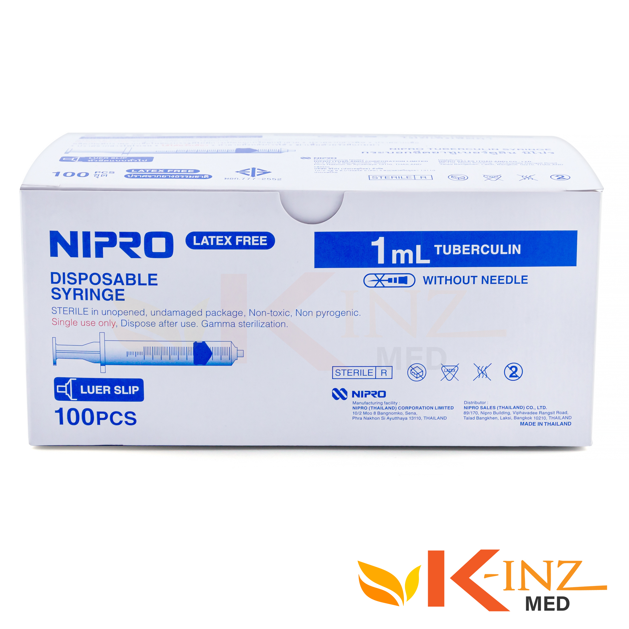 ไซริ้งค์พลาสติก Nipro ขนาด 1 ซีซี Nipro Syringe (100ชิ้น/กล่อง) หัวล็อค