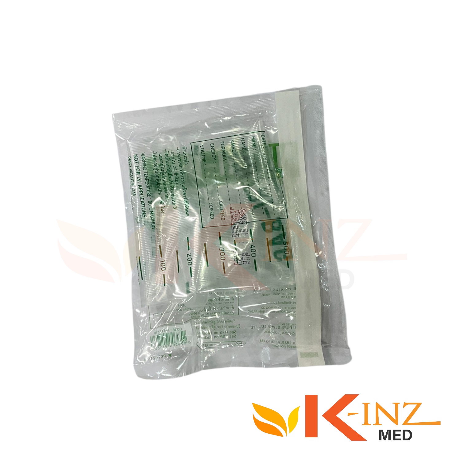- ถุงอาหารเหลวทางสายสำหรับผู้ป่วย NUTRI BAG ขนาดความจุ 500 ML 1 ชุด/1 ถุง