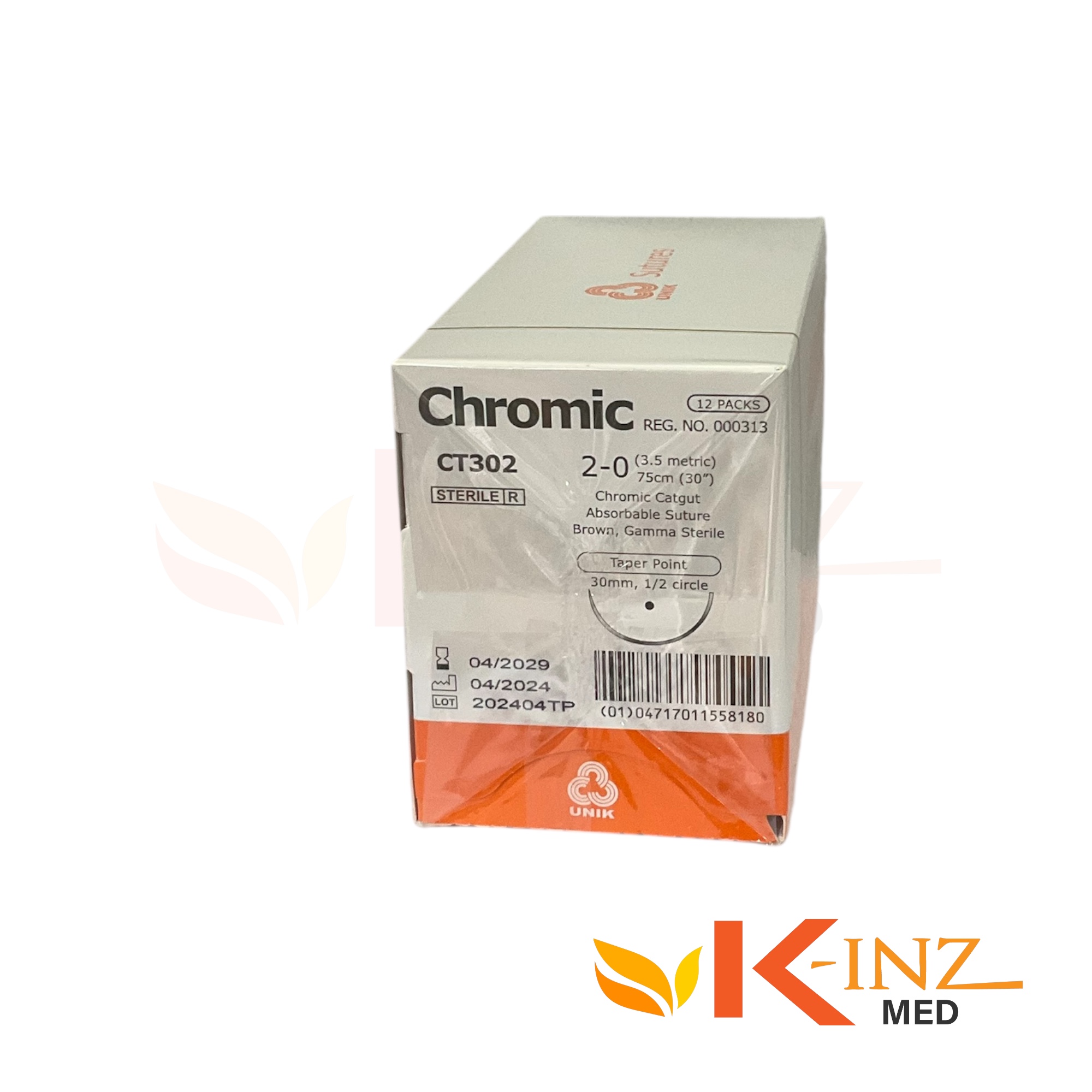 ไหมเย็บแผล CHROMIC UNIK CT302T 1/2 30 2-0 75cm (12 ซอง/กล่อง)
