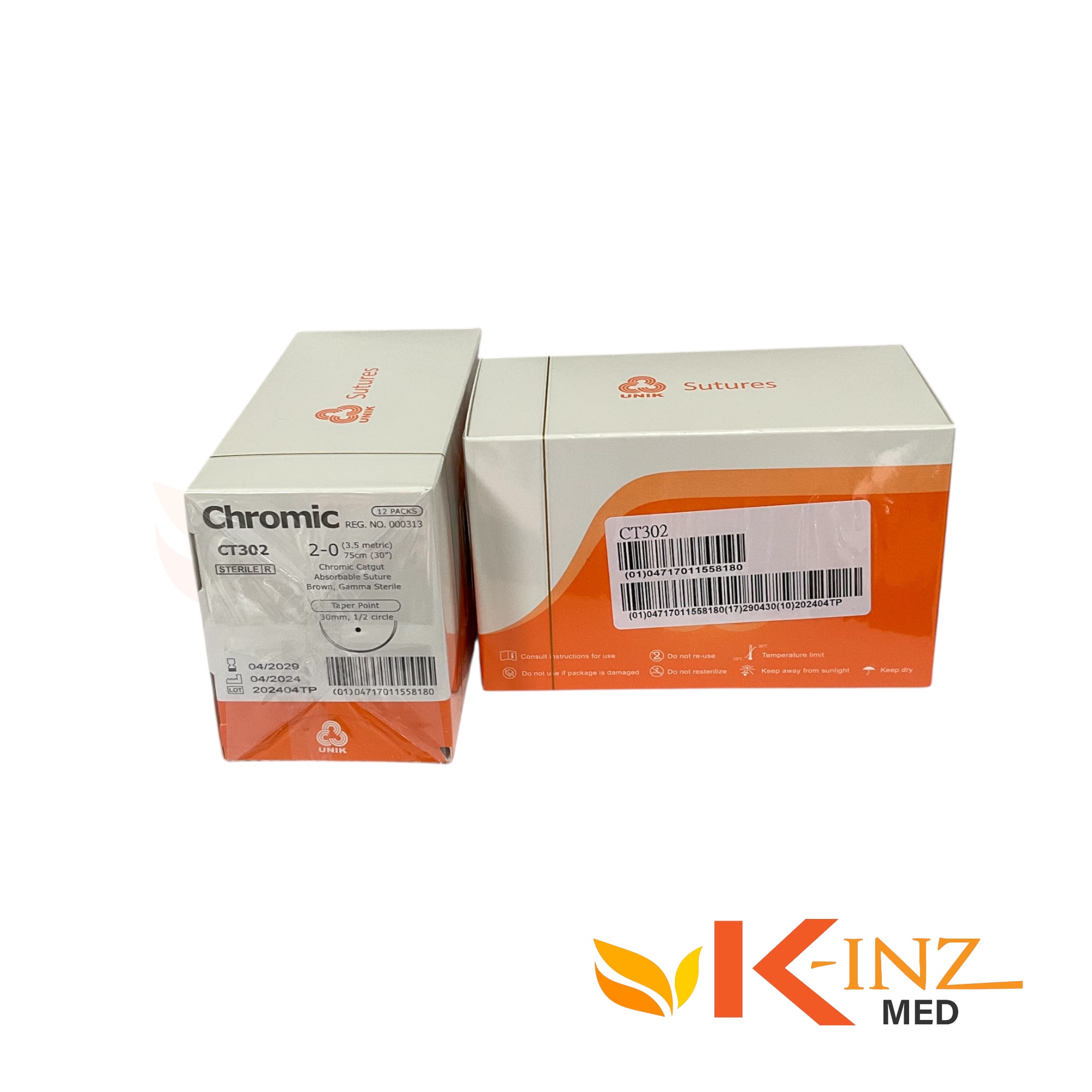 ไหมเย็บแผล CHROMIC UNIK CT302T 1/2 30 2-0 75cm (12 ซอง/กล่อง)