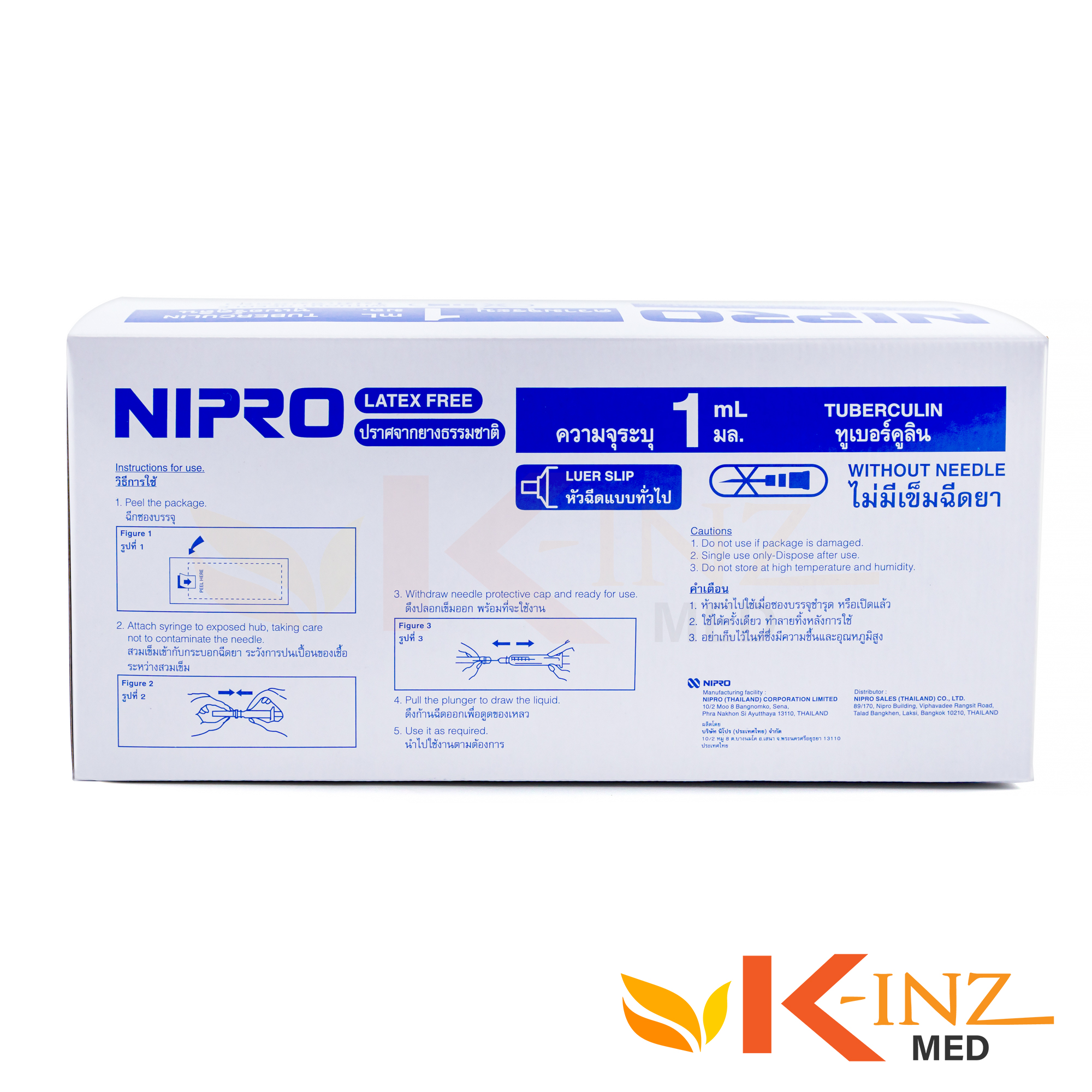 ไซริ้งค์พลาสติก Nipro ขนาด 1 ซีซี Nipro Syringe (100ชิ้น/กล่อง) หัวล็อค