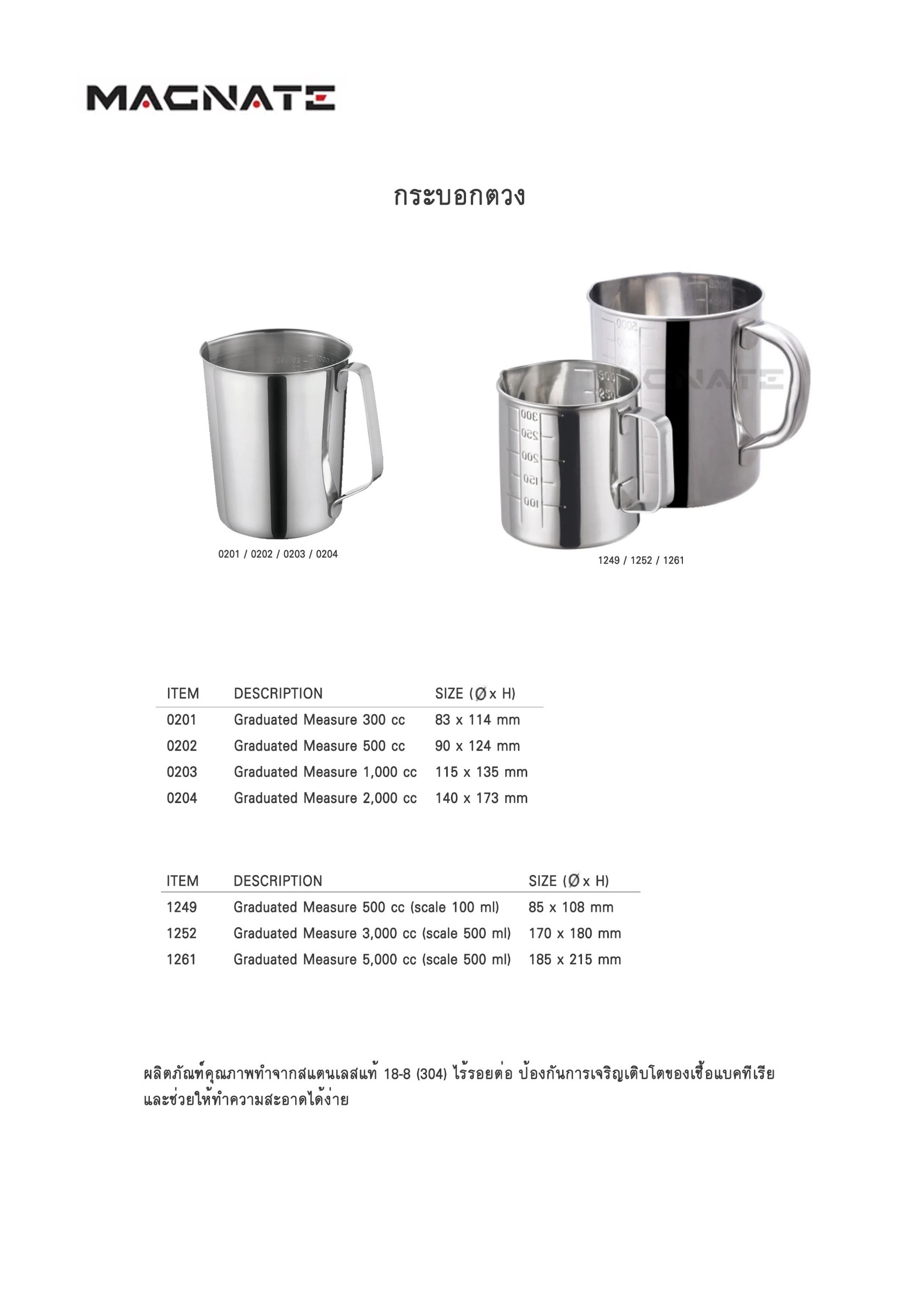กระบอกตวง MAGNATE  ผลิตภัณฑ์คุณภาพทำจากสแตนเลสแท้ 18-8 (304)